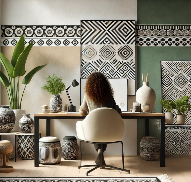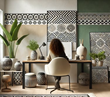 Accompagnement d'artistes et prestations pour entreprises en événementiel et décoration d'intérieur, mêlant modernité et symbolique amazighe.